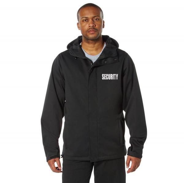 軽量レインジャケットの左胸と背中には、識別しやすいように「SECURITY」の文字が大胆にプリントされています。