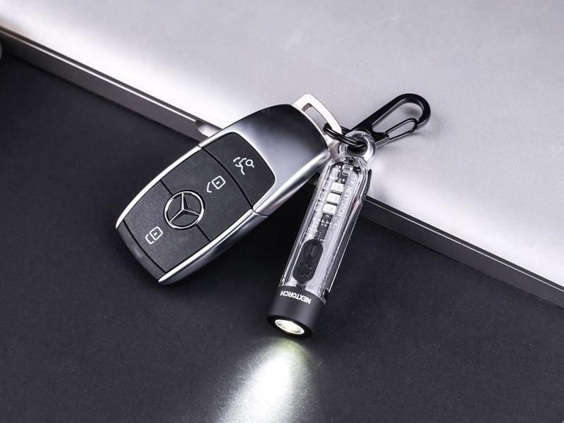 キーホルダーサイズのEDCライトです。コンパクトながらも300ルーメンもの光出力が可能。3段階の調光モードとストロボ機能も搭載されています。さらに側面には赤色LEDとUV-LEDを備えており多彩な点灯モードをご利用いただけます。また二つのスイッチを備えており、これら計7つもの点灯モードの切り替えも直感的に操作することが可能です。充電式のため、繰り返し利用可能。電池残量を確認できるインジケーターも備えています。付属のクリップを利用することで、鞄のウェビングに設置したり、帽子のバイザーに取り付けることでキャップライトとして利用することが可能です。また機能性だけでなく内部の回路等さえもデザインの一部として利用したユニークな見た目も特徴。毎日持ち歩きたくなる秀逸なEDCライトです。