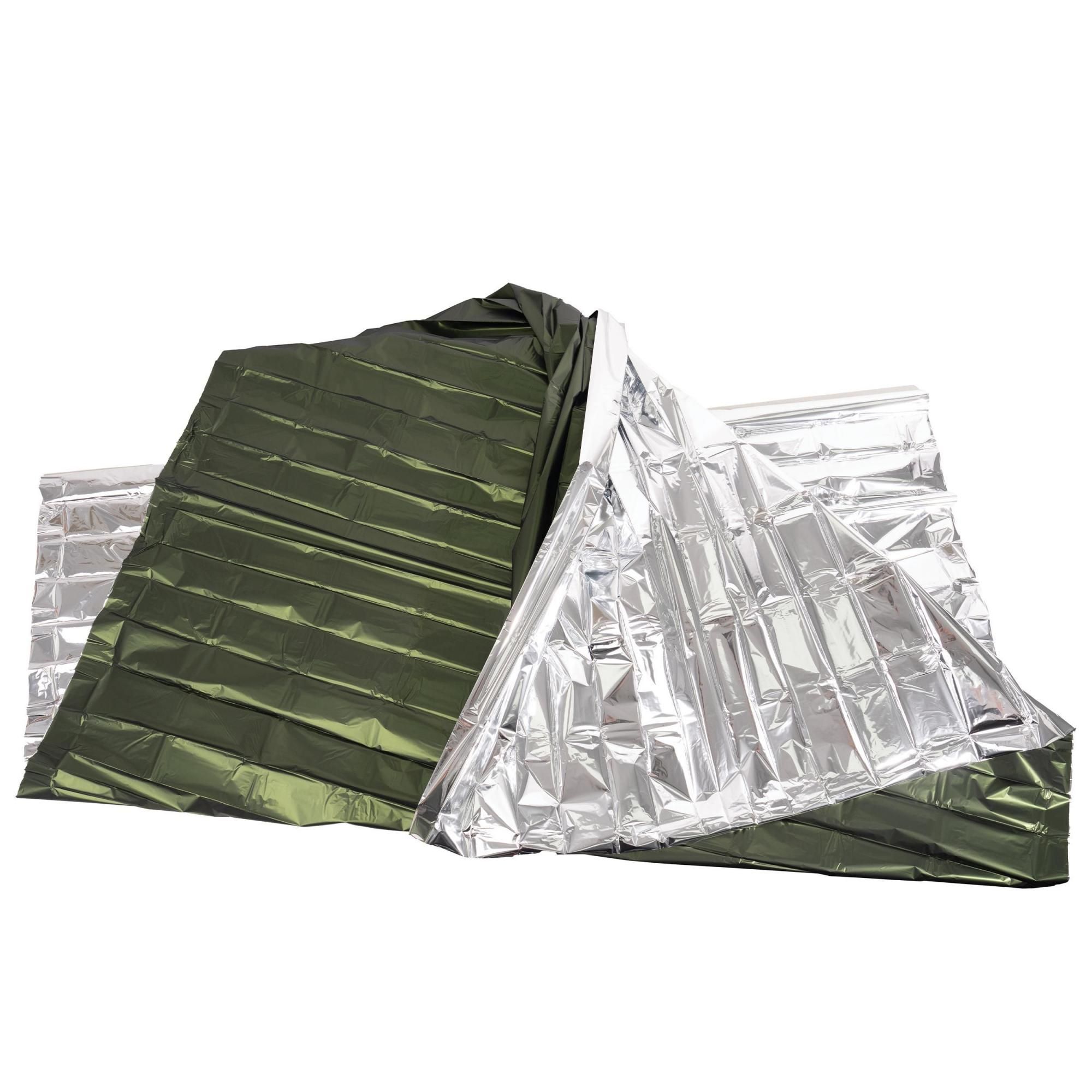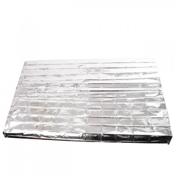 メタライズドポリエステル製のこのサバイバルブランケットは、体温を90%反射し、緊急時に最大限の暖かさを提供します。